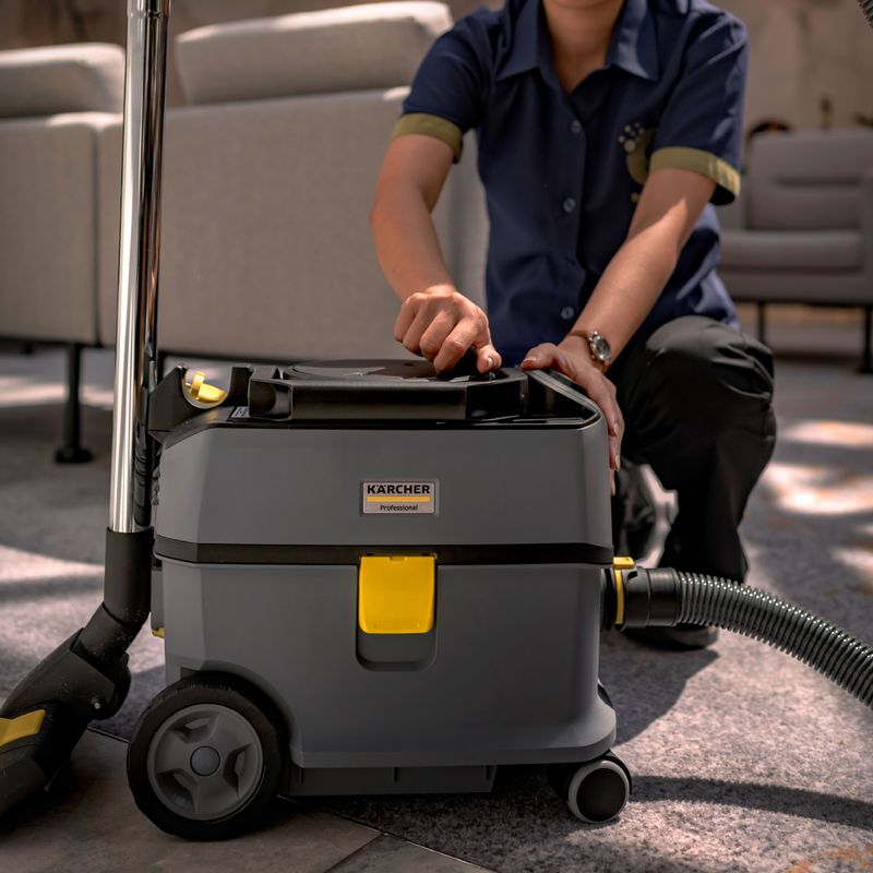 Descripción | La hostelería y la restauración, así como el comercio minorista y la limpieza de edificios se benefician enormemente de la extraordinaria potencia de aspiración y del silencioso ruido de funcionamiento de solo 57 dB(A) de nuestro aspirador en seco a batería T 10/1 Bp. El aspirador está fabricado de forma sostenible con un 45 % de material reciclado* y convence por su excelente calidad de limpieza, robustez y una relación calidad-precio de primera clase. Gracias a las potentes baterías Kärcher Battery Power+ con 36 voltios, el aspirador consigue excelentes resultados de limpieza. El equipo T 10/1 Bp es compacto, basculante y maniobrable, con una capacidad de 10 litros. El asa de transporte plegable permite transportarla de forma ergonómica y pegada al cuerpo. Gracias al compartimento para accesorios integrado, la boquilla para ranuras suministrada puede guardarse siempre al alcance de la mano en la T 10/1 Bp. Puede adquirirse opcionalmente un filtro HEPA 14 de gran eficacia. Al realizar el pedido, tenga en cuenta que para este modelo de equipo es necesario pedir la batería y el cargador rápido correspondiente por separado. |