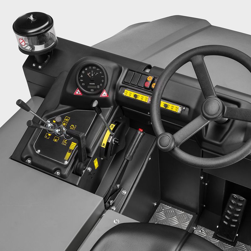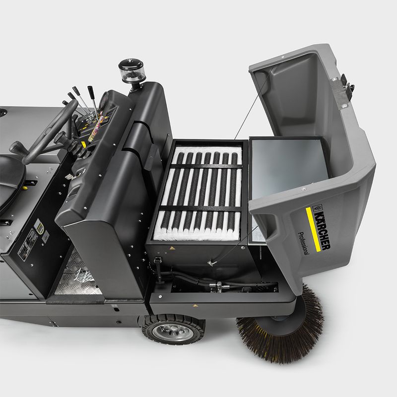 Descripción | Para nuestra potente barredora industrial KM 120/250 R D Classic no hay terreno difícil que se le resista. La construcción robusta, el gran depósito para la suciedad y el resistente filtro de bolsa con motor vibratorio la convierten en la opción ideal para aplicaciones duras en entornos con mucho polvo, como p. ej. obras, industria procesadora de metales o fundiciones. El equipo, de propulsión por diésel con transmisión trasera totalmente hidráulica y sistema de barrido, se ha concebido preferiblemente para exteriores y convence además por su facilidad de manejo, mantenimiento y servicio. Gracias al sistema Flexible Footprint integrado, los cepillos se adaptan perfectamente al suelo y, junto con el principio de recogedor, consiguen excelentes resultados de limpieza tanto con suciedad fina como basta. Sin olvidar el posterior vaciado en alto hidráulico, que garantiza un vaciado muy cómodo de la suciedad eliminada. |