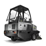 La tecnología más sencilla con componentes acreditados: propulsión totalmente hidráulica, sistema eléctrico en lugar de electrónica. Acceso fácil al espacio del motor para un mantenimiento rápido y sencillo. Cambio sin herramientas del cepillo cilíndrico principal de barrido y del filtro plegado plano.