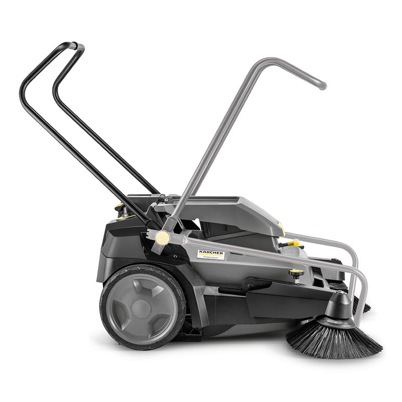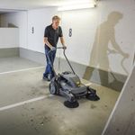 La barredora manual KM 70/15 C Classic limpia fácil y cómodamente superficies interiores y exteriores, siendo mucho más eficaz que un cepillo a partir de 100 m2. Es ligera y muy maniobrable. Cuenta con un cepillo lateral ajustable para bordes y esquinas (con función antipolvo). El depósito de suciedad es extraíble y su asa de empuje plegable permite un almacenamiento que ahorra espacio.