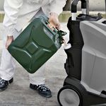 HDS 5/11 UX: el equipo básico de la gama de limpiadoras de alta presión con agua caliente convence por su diseño vertical innovador y bien pensado. Este clase de una concepción de equipo horizontal hace que el peso sea reducido y las dimensiones muy compactas. Así, el equipo se puede transportar muy fácilmente en coches familiares y tiene una gran movilidad en suelos irregulares (gracias a las grandes ruedas y al asa de empuje). Un rendimiento de limpieza altamente eficaz garantiza la combinación de tecnología de boquillas patentada, turboventilador y un mayor rendimiento de la bomba. El trabajo es más cómodo gracias a la pistola de alta presión EASY!Force, que utiliza la fuerza de retroceso del chorro de alta presión para reducir a cero la fuerza de retención del usuario, y a los cierres rápidos EASY!Lock, con los que el montaje y desmontaje es cinco veces más rápido que en las conexiones por rosca convencionales. Un manejo sencillo, las opciones de almacenaje para la manguera y la lanza pulverizadora, además del enrollador de mangueras con manguera de alta presión de 15 m complementan el amplio equipamiento del equipo.