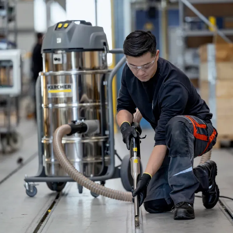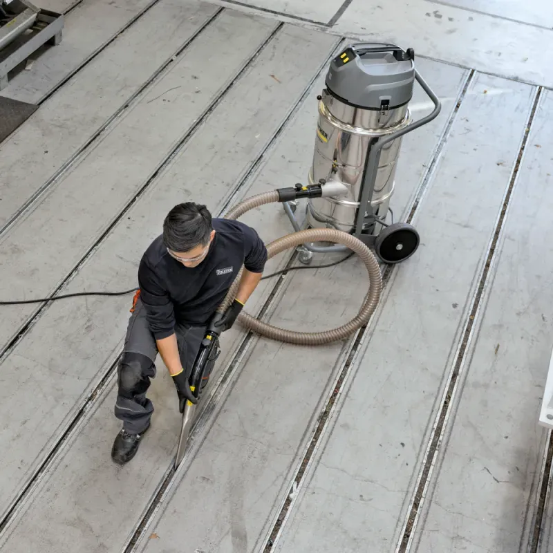 De larga vida útil, robusto, compacto y móvil: nuestro aspirador industrial de polvo de gama media con dos motores IVM 40/24-2 para la aspiración universal de sustancias sólidas finas y gruesas a escala industrial. Este equipo fiable funciona en un modo monofásico, permitiendo el control individual de cada uno de los dos motores. El gran filtro de estrella PTFE de la categoría de polvo M puede limpiarse de manera sencilla, cómoda y eficaz con ayuda del sistema de limpieza del filtro Pull and Clean y sin desconectar el aspirador. El depósito del filtro y el depósito colector del equipo son de acero inoxidable resistente a los ácidos, mientras que la carcasa está fabricada en acero resistente y cuenta con ruedas de gran tamaño que permiten un transporte sencillo.