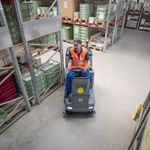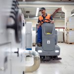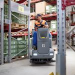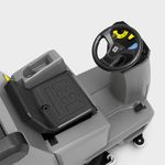 Potente y muy fácil de utilizar: nuestra fregadora-aspiradora con conductor sentado a batería B 75/120 R Classic Bp con tecnología de cepillos circulares y 75 centímetros de ancho útil para tareas de limpieza en, por ejemplo, supermercados, centros comerciales, hospitales, centros de producción o almacenes. Los elementos de control señalizados con un código de colores permiten un manejo muy fácil. Todo esto se complementa con el innovador sistema de llaves KIK, que evita en gran medida los errores de manejo. Y la dosificación de agua en función de la velocidad garantiza un bajo consumo, que se puede ajustar en cualquier momento. El usuario también se beneficia de luces de seguridad diurnas para aumentar la seguridad pasiva.