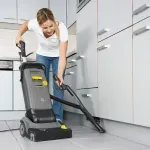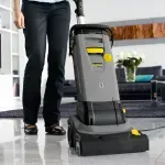 Dada su forma, este equipo es tan fácil de manejar como un aspirador de cepillos. En lugar del fregado convencional, este equipo tiene la ventaja de ofrecer una presión de contacto 10 veces mayor y, por lo tanto, un rendimiento de limpieza considerablemente superior. Y todo ello con una velocidad del cilindro de unas 1500 vueltas por minuto. Puede aspirar marcha adelante y atrás. En caso de suciedad muy incrustada, también se pueden levantar los patines traseros de aspiración. De este modo se consigue un tiempo de actuación más prolongado del grupo de limpieza.