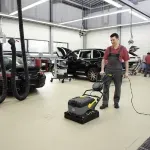 Dos cepillos cilíndricos con una gran velocidad de giro y una elevada presión de apriete. Los dos labios de aspiración recogen el agua tanto hacia adelante como hacia atrás. El suelo se puede pisar de nuevo inmediatamente.